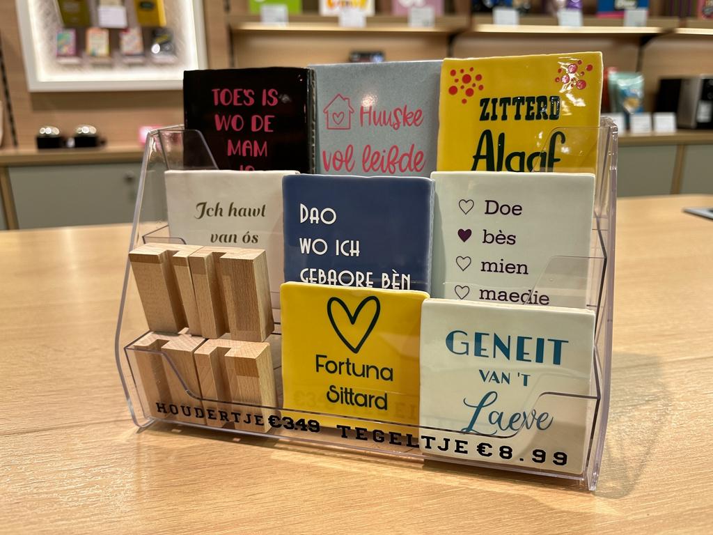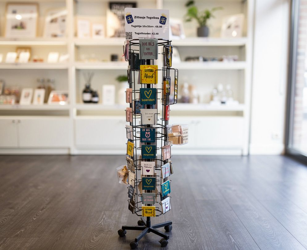 Ook interesse om onze leuke tegeltjes te verkopen in jouw winkel? Plaats een leuke toonbankdisplay, wij verzorgen de toonbank display en zorgen dat er altijd leuke tegeltjes in staan.